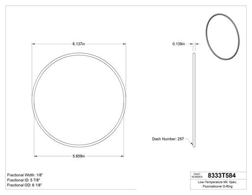 Kimyasala Dayanıklı, 1/8 (3.17 mm) Kesirli Genişlik, Dash Numarası 257