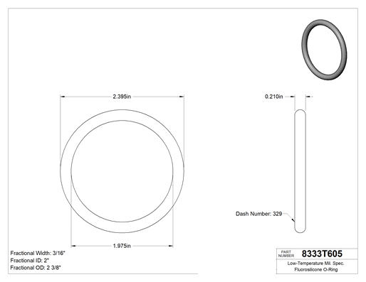 Kimyasala Dayanıklı, 3/16 (4.76 mm) Kesirli Genişlik, Dash Numarası 329