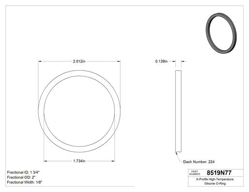 1/8 (3.17 mm) Kesirli Genişlik, Dash Numarası 224