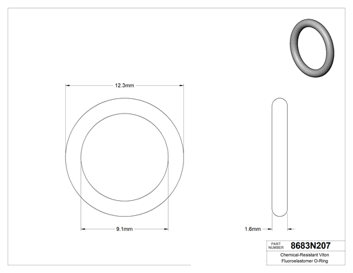 Süper Esnek, 1.6 mm Genişlik, 9.1 mm İç Çap, 12.3 mm Dış Çap