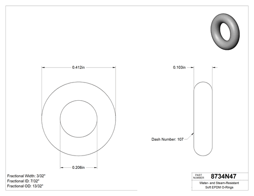 3/32 (2.38 mm) Kesirli Genişlik, Dash Numarası 107