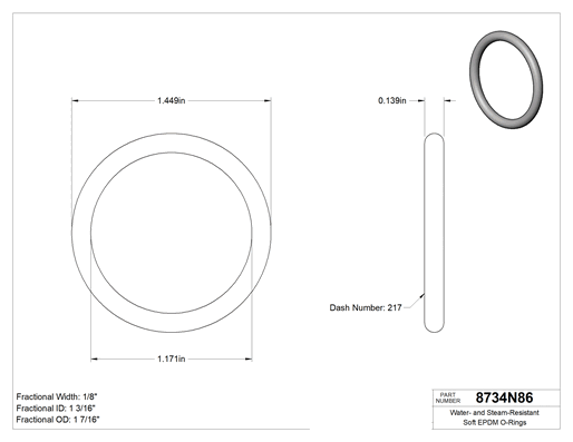 1/8 (3.17 mm) Kesirli Genişlik, Dash Numarası 217