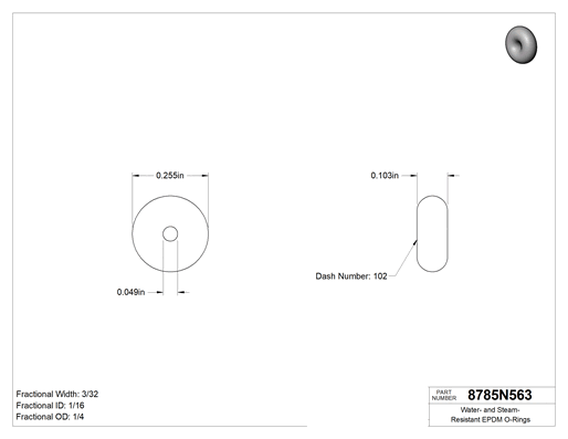 3/32 (2.38 mm) Kesirli Genişlik, Dash Numarası 102