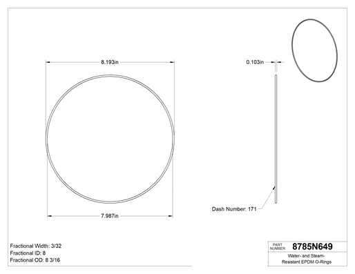 3/32 (2.38 mm) Kesirli Genişlik, Dash Numarası 171