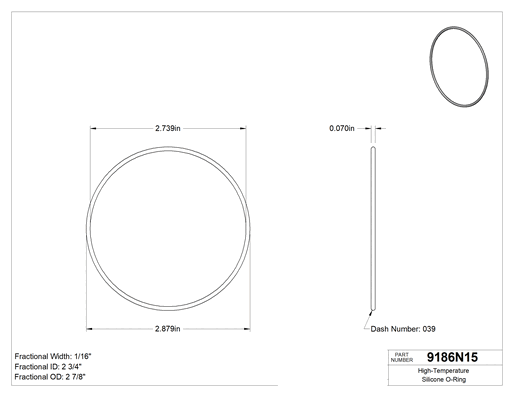Silikondan üretilen bu O-ringler 400° F ve üzeri sıcaklıklara dayanabilir. Gıda ile doğrudan temas için FDA uyumludur, bu nedenle sıcak gıda hatlarında sıkça kullanılır. Ayrıca HVAC sistemlerinin sızdırmazlığında da kullanılır. Tümünde poşet üzerinde kürleme tarihi ve izlenebilir lot numarası basılıdır.