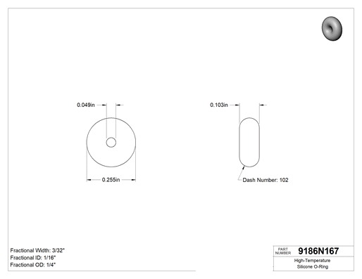 Silikondan üretilen bu O-ringler 400° F ve üzeri sıcaklıklara dayanabilir. Gıda ile doğrudan temas için FDA uyumludur, bu nedenle sıcak gıda hatlarında sıkça kullanılır. Ayrıca HVAC sistemlerinin sızdırmazlığında da kullanılır. Tümünde poşet üzerinde kürleme tarihi ve izlenebilir lot numarası basılıdır.