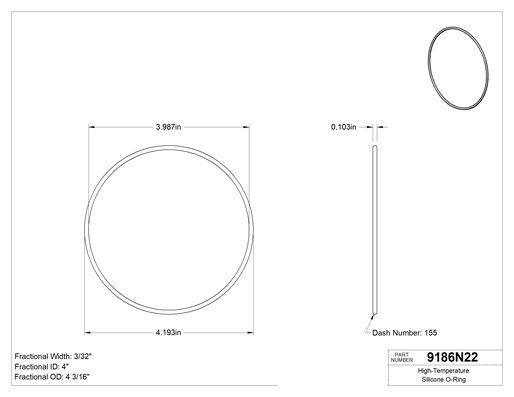 Silikondan üretilen bu O-ringler 400° F ve üzeri sıcaklıklara dayanabilir. Gıda ile doğrudan temas için FDA uyumludur, bu nedenle sıcak gıda hatlarında sıkça kullanılır. Ayrıca HVAC sistemlerinin sızdırmazlığında da kullanılır. Tümünde poşet üzerinde kürleme tarihi ve izlenebilir lot numarası basılıdır.