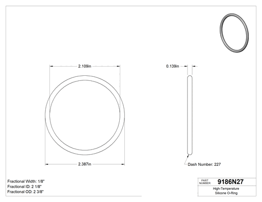 Silikondan üretilen bu O-ringler 400° F ve üzeri sıcaklıklara dayanabilir. Gıda ile doğrudan temas için FDA uyumludur, bu nedenle sıcak gıda hatlarında sıkça kullanılır. Ayrıca HVAC sistemlerinin sızdırmazlığında da kullanılır. Tümünde poşet üzerinde kürleme tarihi ve izlenebilir lot numarası basılıdır.