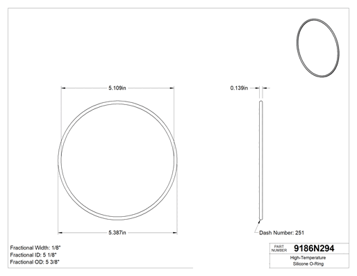 Silikondan üretilen bu O-ringler 400° F ve üzeri sıcaklıklara dayanabilir. Gıda ile doğrudan temas için FDA uyumludur, bu nedenle sıcak gıda hatlarında sıkça kullanılır. Ayrıca HVAC sistemlerinin sızdırmazlığında da kullanılır. Tümünde poşet üzerinde kürleme tarihi ve izlenebilir lot numarası basılıdır.