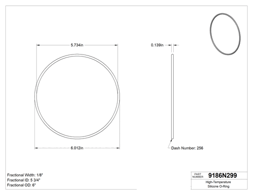 Silikondan üretilen bu O-ringler 400° F ve üzeri sıcaklıklara dayanabilir. Gıda ile doğrudan temas için FDA uyumludur, bu nedenle sıcak gıda hatlarında sıkça kullanılır. Ayrıca HVAC sistemlerinin sızdırmazlığında da kullanılır. Tümünde poşet üzerinde kürleme tarihi ve izlenebilir lot numarası basılıdır.