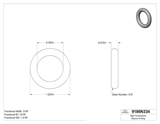Silikondan üretilen bu O-ringler 400° F ve üzeri sıcaklıklara dayanabilir. Gıda ile doğrudan temas için FDA uyumludur, bu nedenle sıcak gıda hatlarında sıkça kullanılır. Ayrıca HVAC sistemlerinin sızdırmazlığında da kullanılır. Tümünde poşet üzerinde kürleme tarihi ve izlenebilir lot numarası basılıdır.