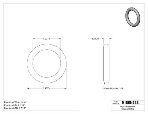 Silikondan üretilen bu O-ringler 400° F ve üzeri sıcaklıklara dayanabilir. Gıda ile doğrudan temas için FDA uyumludur, bu nedenle sıcak gıda hatlarında sıkça kullanılır. Ayrıca HVAC sistemlerinin sızdırmazlığında da kullanılır. Tümünde poşet üzerinde kürleme tarihi ve izlenebilir lot numarası basılıdır.