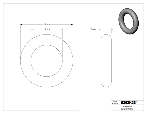 Buna-N malzemeden üretilen bu O-ringler grese, hidrolik yağa ve motor yağına, ayrıca hafif kimyasallara ve suya dayanıklıdır. Ancak Buna-N fren sıvısı ile kullanıma uygun değildir. Bu O-ringler genellikle güç iletim montajlarında, hidrolik silindirlerde ve pnömatik silindirlerde iki parça arasında çok yönlü sızdırmazlık oluşturmak için kullanılır. Zamanla şekillerini korumak için sıkışmaya ve yırtılmaya dayanıklıdır. Tümünün ambalajında raf ömrü, kürleme tarihi ve izlenebilir lot numarası basılıdır.