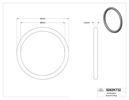Buna-N malzemeden üretilen bu O-ringler grese, hidrolik yağa ve motor yağına, ayrıca hafif kimyasallara ve suya dayanıklıdır. Ancak Buna-N fren sıvısı ile kullanıma uygun değildir. Bu O-ringler genellikle güç iletim montajlarında, hidrolik silindirlerde ve pnömatik silindirlerde iki parça arasında çok yönlü sızdırmazlık oluşturmak için kullanılır. Zamanla şekillerini korumak için sıkışmaya ve yırtılmaya dayanıklıdır. Tümünün ambalajında raf ömrü, kürleme tarihi ve izlenebilir lot numarası basılıdır.