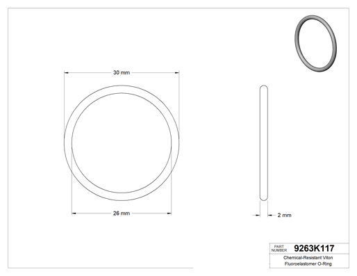 Bu Viton® floroelastomer O-ringler, benzen, bütil alkol ve etilen glikol dahil geniş bir kimyasal yelpazesine dayanıklıdır. Yuvarlak profile sahiptir ve hem statik hem dinamik sızdırmazlık uygulamalarına uygundur.
