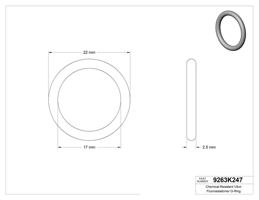 Bu Viton® floroelastomer O-ringler, benzen, bütil alkol ve etilen glikol dahil geniş bir kimyasal yelpazesine dayanıklıdır. Yuvarlak profile sahiptir ve hem statik hem dinamik sızdırmazlık uygulamalarına uygundur.