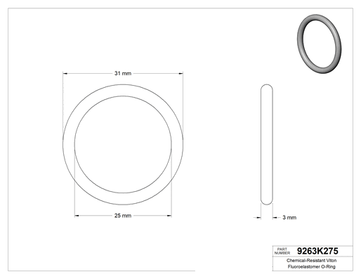 Bu Viton® floroelastomer O-ringler, benzen, bütil alkol ve etilen glikol dahil geniş bir kimyasal yelpazesine dayanıklıdır. Yuvarlak profile sahiptir ve hem statik hem dinamik sızdırmazlık uygulamalarına uygundur.