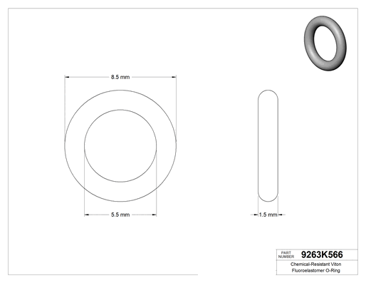 Bu Viton® floroelastomer O-ringler, benzen, bütil alkol ve etilen glikol dahil geniş bir kimyasal yelpazesine dayanıklıdır. Yuvarlak profile sahiptir ve hem statik hem dinamik sızdırmazlık uygulamalarına uygundur.