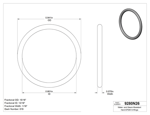 Standart EPDM O-ringlerden daha sert olan bu O-ringler, aşınmaya ve yıpranmaya karşı daha dayanıklıdır. Daha az süngerimsi oldukları için yüksek basınç altında kanallardan sıkışıp çıkma olasılıkları daha düşüktür. Genellikle pnömatik aktüatörlerde kullanılır. Bu O-ringler suya, buhara ve glikole dayanıklıdır; ayrıca dış mekanda da kullanılabilir. Tümünün ambalajında raf ömrü, kürleme tarihi ve izlenebilir lot numarası basılıdır.