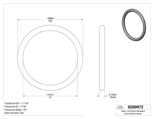 Standart EPDM O-ringlerden daha sert olan bu O-ringler, aşınmaya ve yıpranmaya karşı daha dayanıklıdır. Daha az süngerimsi oldukları için yüksek basınç altında kanallardan sıkışıp çıkma olasılıkları daha düşüktür. Genellikle pnömatik aktüatörlerde kullanılır. Bu O-ringler suya, buhara ve glikole dayanıklıdır; ayrıca dış mekanda da kullanılabilir. Tümünün ambalajında raf ömrü, kürleme tarihi ve izlenebilir lot numarası basılıdır.