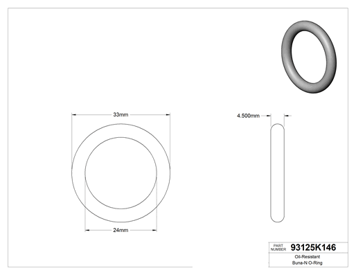 Buna-N malzemeden üretilen bu O-ringler grese, hidrolik yağa ve motor yağına, ayrıca hafif kimyasallara ve suya dayanıklıdır. Ancak Buna-N fren sıvısı ile kullanıma uygun değildir. Bu O-ringler genellikle güç iletim montajlarında, hidrolik silindirlerde ve pnömatik silindirlerde iki parça arasında çok yönlü sızdırmazlık oluşturmak için kullanılır. Zamanla şekillerini korumak için sıkışmaya ve yırtılmaya dayanıklıdır. Tümünün ambalajında raf ömrü, kürleme tarihi ve izlenebilir lot numarası basılıdır.
