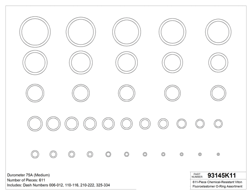 611-Piece Kimyasala Dayanıklı Viton® Floroelastomer O-Ring Assortment