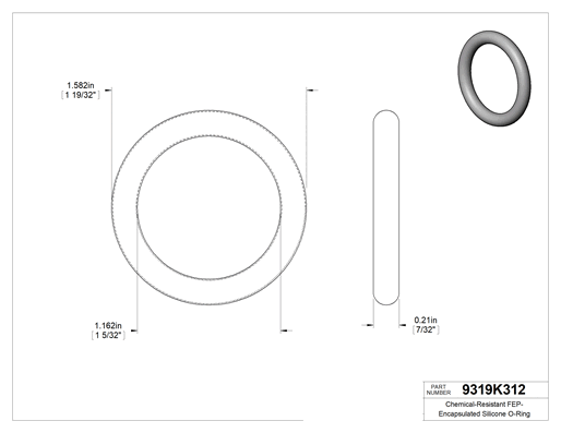 HVAC sistemleri, dondurucular ve kimyasallara maruz kalan diğer soğuk uygulamalardaki hatları ve vanaları sızdırmaz hale getirin. FEP kılıfla üretilen bu O-ringler, metanol ve borik asit gibi kimyasallara karşı korunmuştur. Kimyasal dirençte Viton® floroelastomerden bir adım ileridedir ancak PTFE kadar sağlam değildir. Silikon çekirdekleri -75° F kadar düşük sıcaklıklarda bile sıkıştırılabilir kalır. Tümünde raf ömrü, kürleme tarihi ve izlenebilir lot numarası ambalajda yazmaktadır.