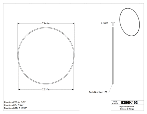 Bu O-ringleri 400° F'a kadar sıcaklıklarda kullanın. Parker S1138 silikondan üretilmiş olup, gıda veya ilaç uygulamaları için yeterince saftır — USP VI sertifikalıdır. Bu O-ringler ayrıca gıda ile doğrudan temas için FDA uyumludur. Tümünde poşet üzerinde kürleme tarihi ve izlenebilir lot numarası basılıdır.