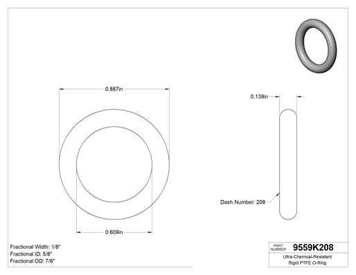 1/8 (3.17 mm) Kesirli Genişlik, Dash Numarası 208