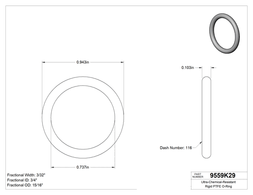 3/32 (2.38 mm) Kesirli Genişlik, Dash Numarası 116