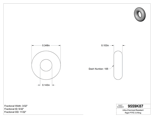 3/32 (2.38 mm) Kesirli Genişlik, Dash Numarası 105